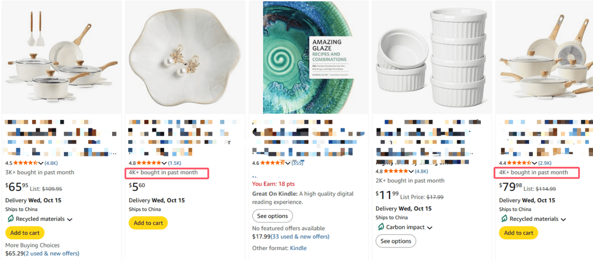 单以亚马逊平台为例,其中一款售价仅为5.6美元的陶瓷饰品托盘月销量突破4000单。与此同时,一款定价近80美元的陶瓷炊具套装也实现了月销4000单的成绩。