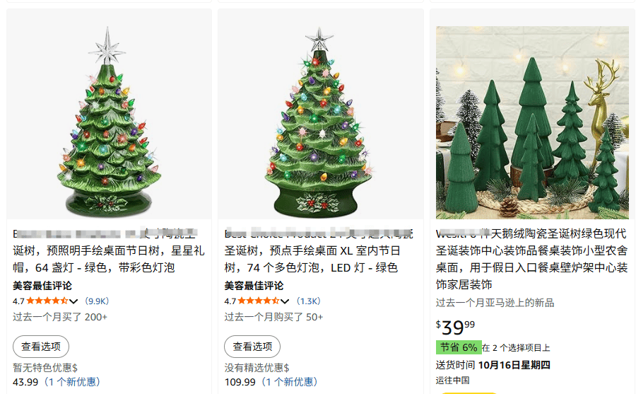 亚马逊平台检索“Ceramic Christmas Tree”会发现,部分卖家已凭借此单品实现月销超200单的佳绩。可以预见,随着节日临近,市场需求大幅放量,接下来,众多卖家迎来销量爆发几乎是板上钉钉之事。